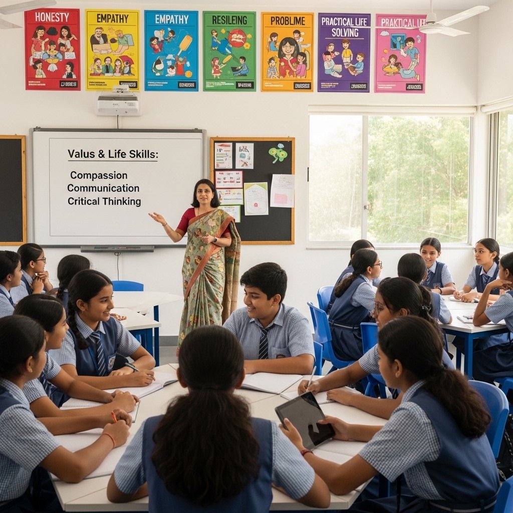 Our value education and life skills program develops integrity, empathy, responsibility, and practical decision-making abilities in students.